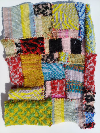 I enjoy using lots of colours in my work now! This is combined with stripes, geometrics, jaquards and texture in striking artwork to wear, hang, and decorate your home with.